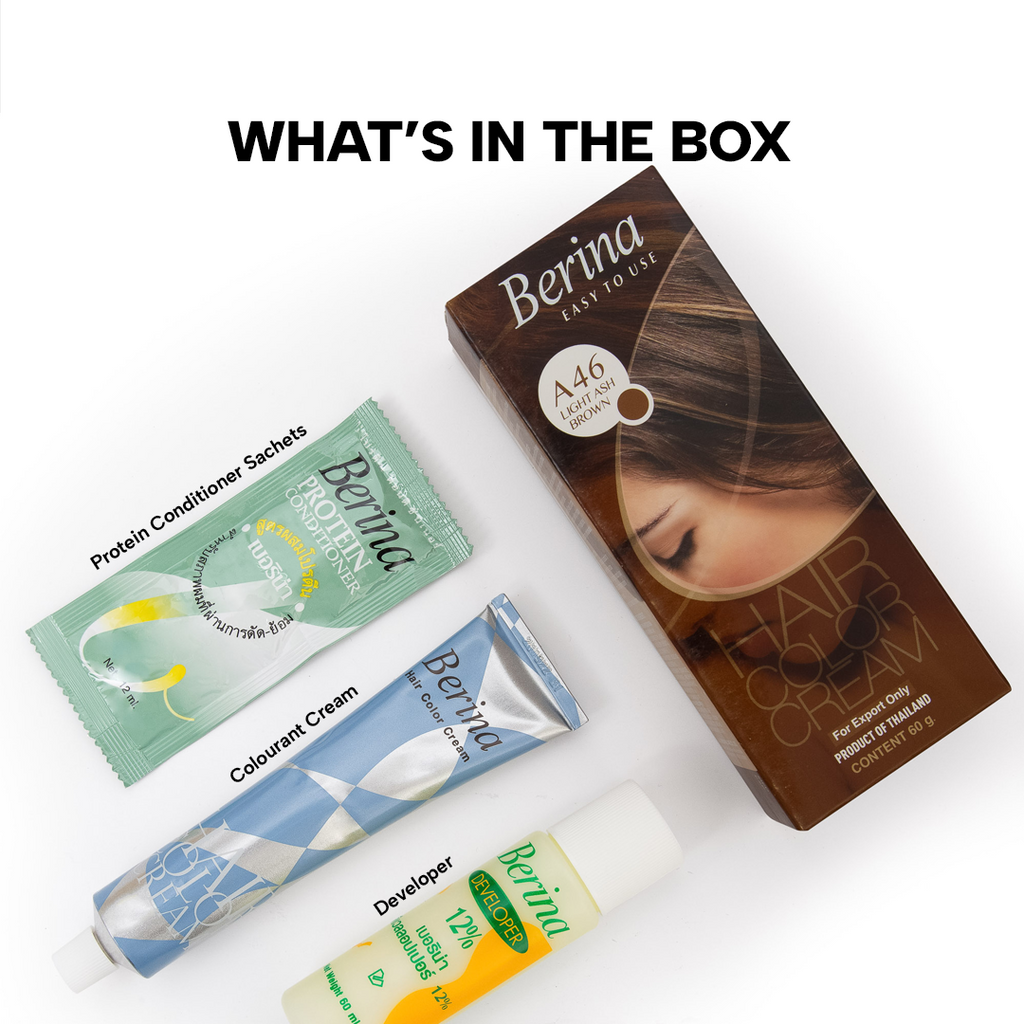 Achieve a classic, timeless look with the Berina Professional Hair Color Cream in A46 Light Ash Brown